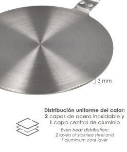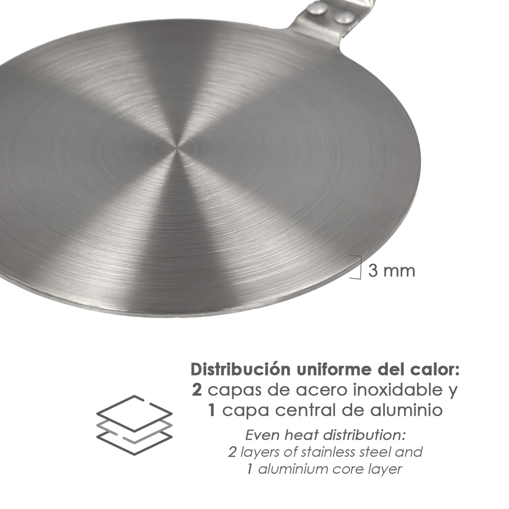 – Fabricado en 3 capas, 2 exteriores de acero inoxidable y una central de aluminio.