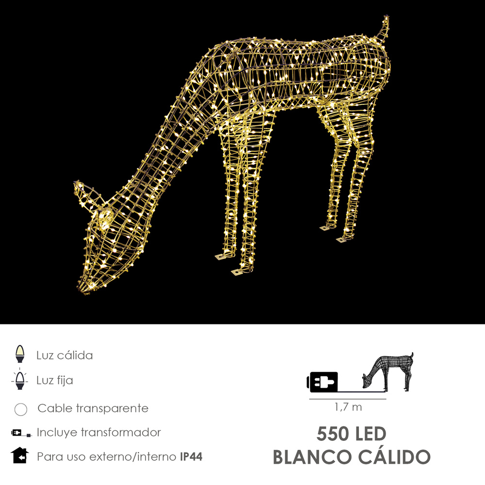 Luces Navidad Ciervo 3D 550 LEDs. Uso en Exteriores e Interiores Proteccion IP44 Altura 73 cm.