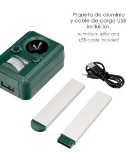 – Mantiene alejados a roedores, pajaros, perros, gatos y animales salvajes con ultrasonidos y destellos de luz.