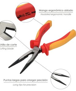 Alicates Boca Recta 200 mm. Mangos Aislados VDE de 1.000 V. Acero Cromo Vanadio