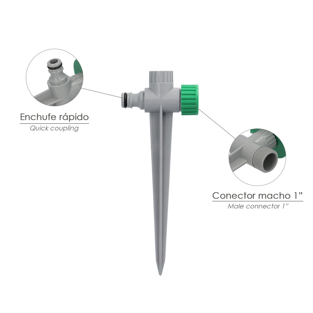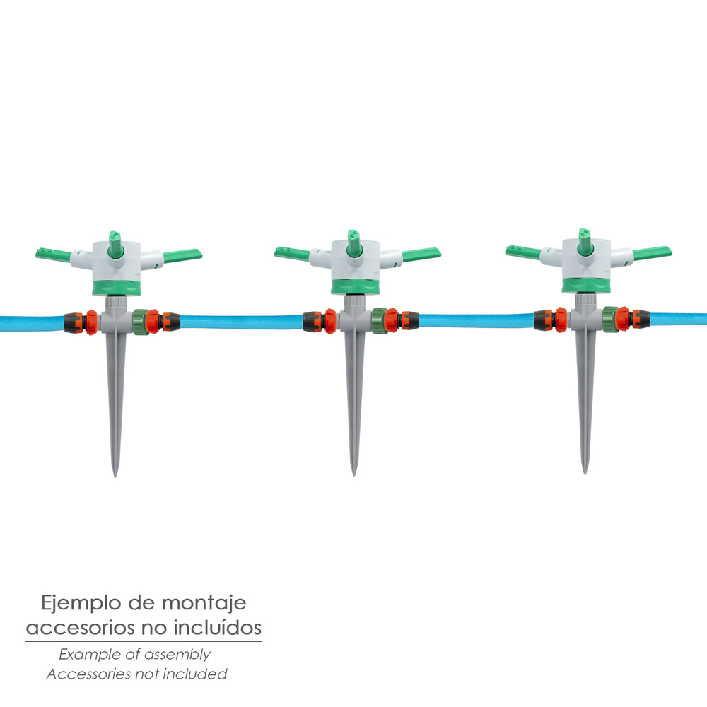 Aspersor plástico giratorio 3 brazos con pincho