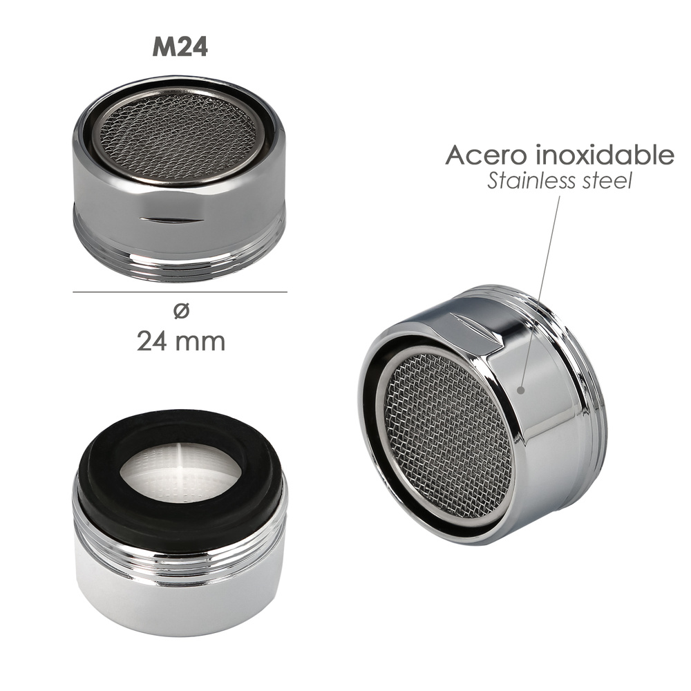 – Tamaño M24. Con este filtro aireador de agua limita el flujo de agua en los grifos, por lo que reduce el consumo de agua.