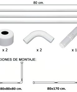 Barra Para Cortina Ducha Universal Aluminio Blanco 80 x 170 cm.