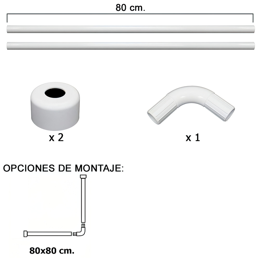 Barra Para Cortina Ducha Universal Aluminio Blanco 80×80 cm.