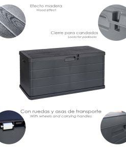 Baul Resina 118x59x57 (Alt.) cm. antracita Con Ruedas. Armario Jardin, Baul Jardin.