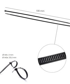 Brida Nylon 100%. Color Negro 2,5 x 100 mm. (Bolsa 100 Unidades)