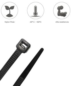 Brida Nylon 100%. Color Negro 3,5 x 200 mm. Bolsa 100 unidades. Abrazadera Plastico, Organizador Cables, Alta Resistencia