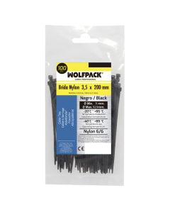 Brida Nylon 100%. Color Negro 3,5 x 200 mm. (Bolsa 100 Unidades)