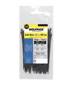 Brida Nylon 100%. Color Negro 4,5 x 200 mm. (Bolsa 100 Unidades)
