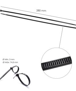 Brida Nylon 100%. Color Negro 4,5 x 280 mm. (Bolsa 100 Unidades)