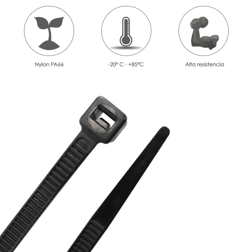 Brida Nylon 100%. Color Negro 7,8 x 540 mm. Bolsa 100 unidades. Abrazadera Plastico, Organizador Cables, Alta Resistencia