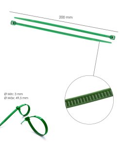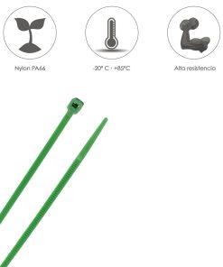 Brida Nylon 100%. Color Verde 4,6 x 200 mm. (Bolsa 100 Unidades)