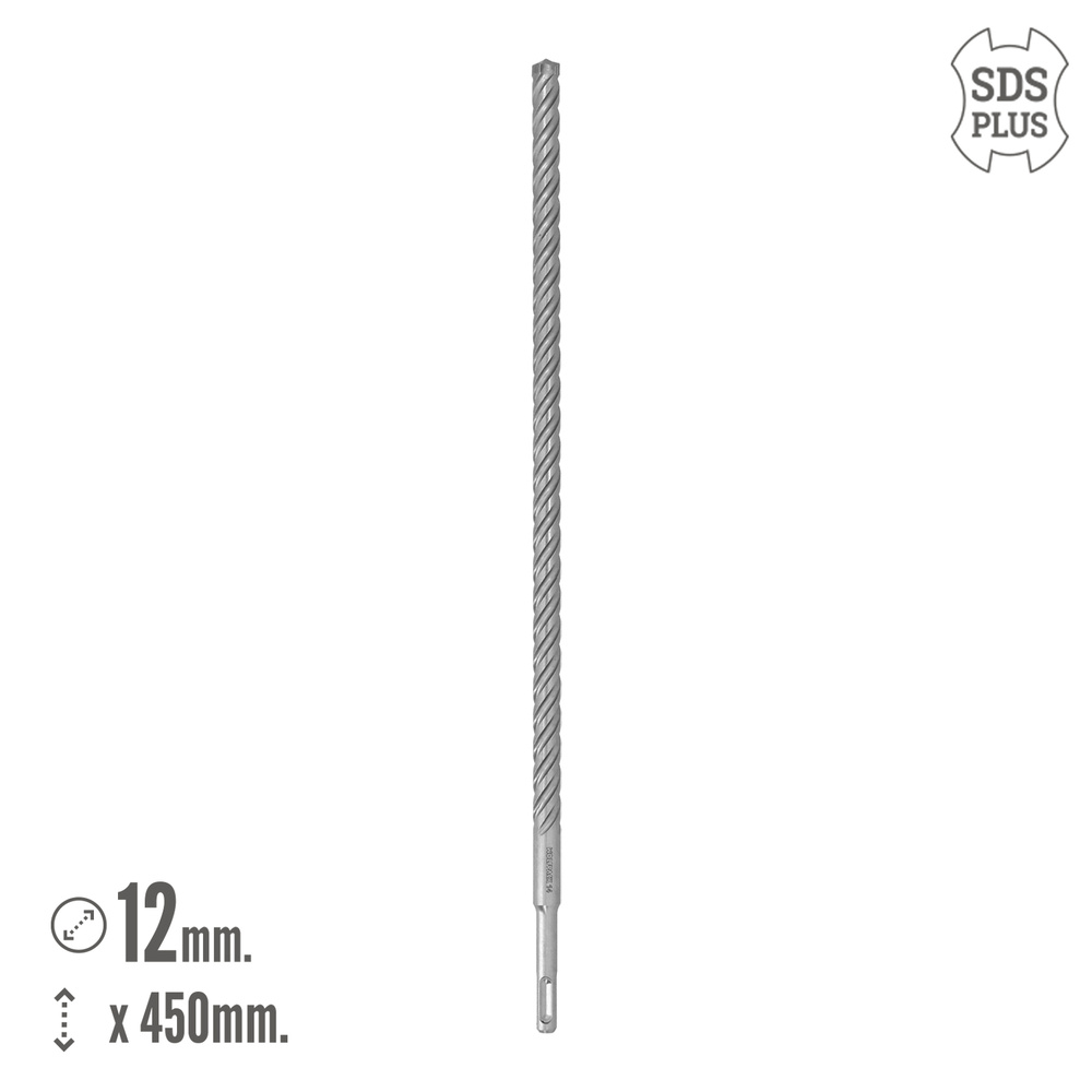 Broca Sds Plus 8 Filos Cortantes Especial Para Hormigon Armado Ø 12 x 450 mm. Broca Paredes, Broca Cimientos, Broca Muros