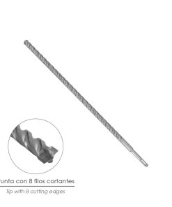 – Broca de alto rendimiento con 8 filos de corte de metal duro integral, especialmente indicado para el taladrado de hormigón armado.