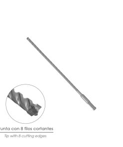 – Broca de alto rendimiento con 8 filos de corte de metal duro integral, especialmente indicado para el taladrado de hormigón armado.