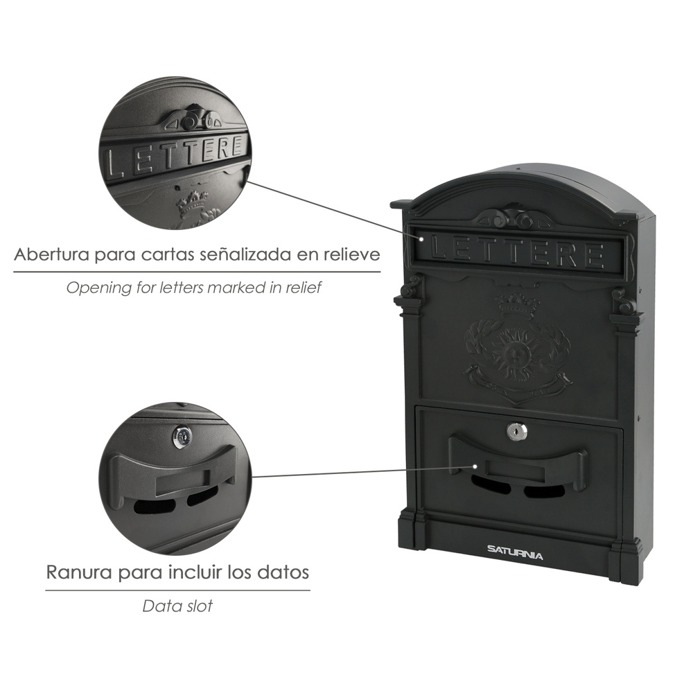 Buzon Jardín Aluminio Fundido Palace Gris Antracita 255 x 410 x 90 mm.