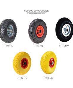 – Contiene dos ruedas neumáticas de Ø 260 x 85 mm. (10″) con válvula Schrader.