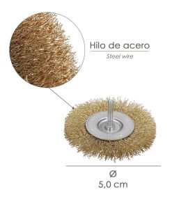 Cepillo Acero Latonado Disco Ø 50 mm. Espiga 1/4″