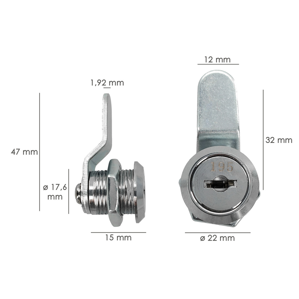 – Leva y tuerca de leva fáciles de instalar, se puede girar 90 grados para abrir. La cerradura de leva de seguridad viene con dos llaves.