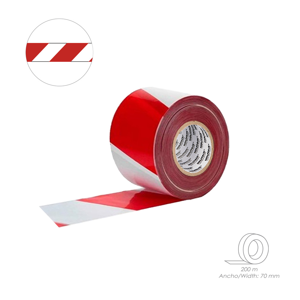Cinta Señalización Polietileno Roja/Blanca Rollo 70 mm. x 200 Metros