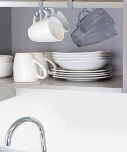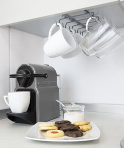 – Colgador para tazas o menaje de cocina, que puede colocarse bajo baldas o armarios de cocina, y permite organizar de forma práctica su menaje.
