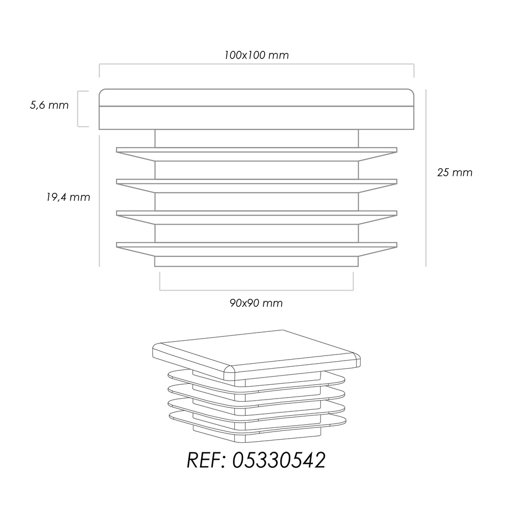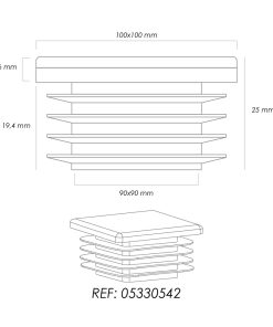 – Medida exterior: 100x100mm.