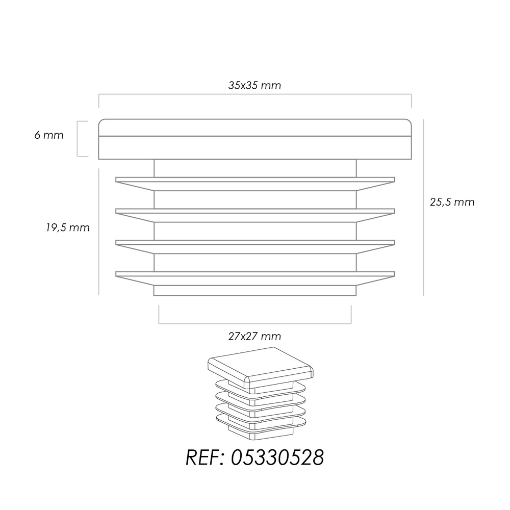 Contera Interior Plastico Cuadrada 35×35 mm. Color Negro. Bolsa 200 Unidades. Contera Mesa, Silla, Muebles, Estanteria