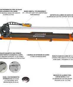 – Gracias a sus barras de extensión de 330 mm. puede ampliar su base hasta los 830 mm. de ancho ideal para baldosas grandes.