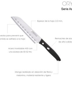 Cuchillo Aspen Santoku Hoja Acero Inoxidable 17 cm. Negro
