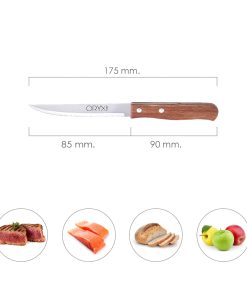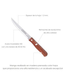 Cuchillo Montana Chuletero Hoja Acero Inoxidable 9 cm. Mango Madera (Blister 3 Piezas)