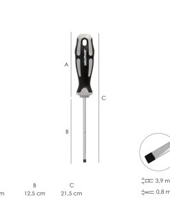 Destornillador Plano Estampado Acero S2 Mango TPR Bimaterial. Medida 0,8 x Ø 4,0 x 100 mm. DIN5265