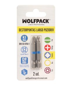 Destorpuntas Largo Pozidriv Nº 3 (2 Piezas) Acero S2 al Cromo Vanadio