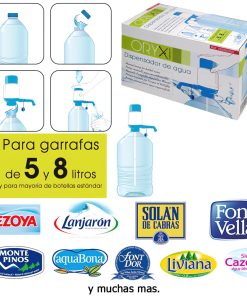 – Dispensador de agua manual compatible con garrafas y botellas de PET de : 3, 5, 6.25, 8 y 10L.