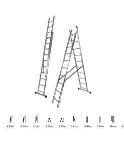 Etiquetas: escalera, escalera aluminio, escalera profesional, escalera 2 tramos, escalera 9+9