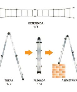 Escalera Aluminio 3 Tramos 9+9+9 Peldaños.Plegable, Telescópica, Antideslizante, Resistente.