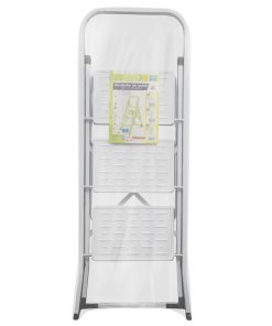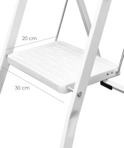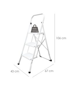 – Escalerilla fabricada en acero y color blanco, con 3 resistentes peldaños y patas de pvc antideslizantes para uso doméstico.