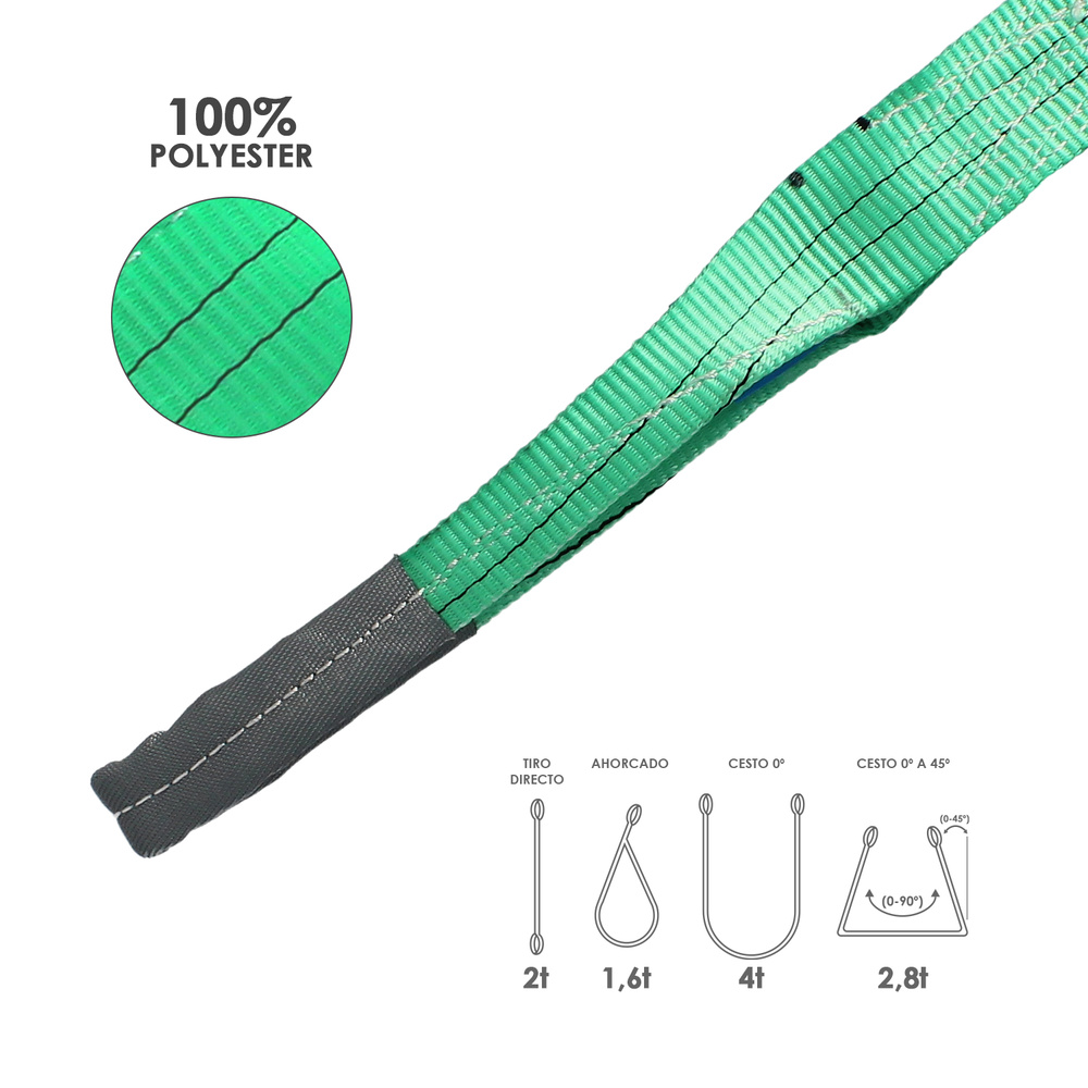 Eslinga Plana Doble Banda 2.000 Kg. 3 Metros Color Verde