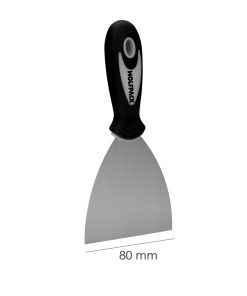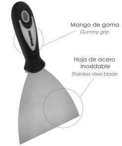 – Espatula fabricada en acero inoxidable de 80 mm. y mango ergonomico de goma.