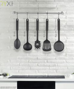 – Realizado en nylon, material ligero y resistente. Material similar a la silicona, ya que ambos materiales no absorven olores ni sabores ademas pueden usarse en todo tipo de sartenes y ollas, ya uqe no rayan la base.