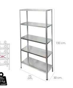 Modulo Estanteria Galvanizado con 5 Baldas 150x75x30 cm.