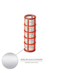 – El cartucho de malla tiene una capacidad de filtración de 100 mesh, incorpora 2 juntas toricas en los extemos para una mayor estanqueidad y reducción de suciedad.