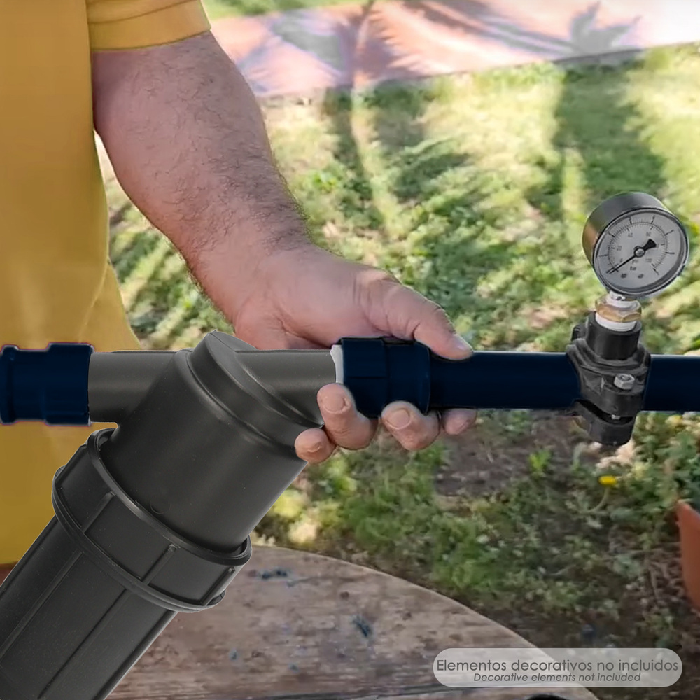 – Con este filtro se evita que las impurezas y la suciedad taponen las tuberias y los goteros.