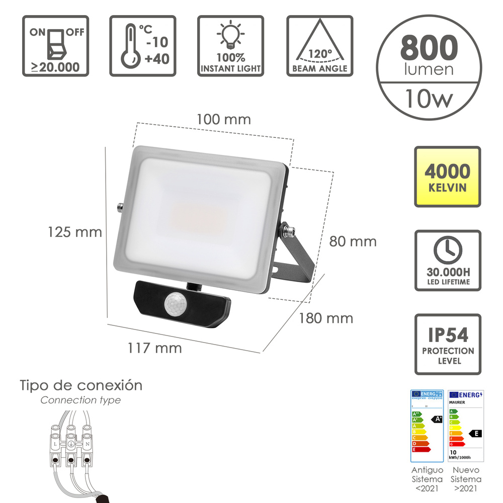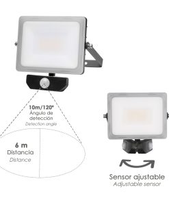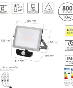 Foco Led Plano 10 Watt. Luz Blanca 4000º K IP 65 800 Lumenes Con Sensor de Presencia