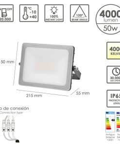 Foco Led Plano 50 Watt. 4000 Lumens. Luz blanca 4000ºK Protección IP65. Cuerpo Aluminio