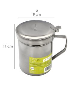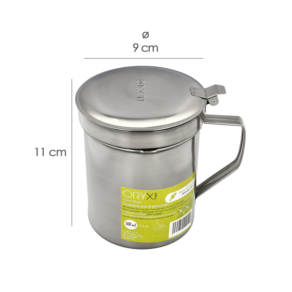 Grasera Acero Inoxidable Para Pescado Aceitera Aceite Usado 0,5 L. Con Colador y Tapa, Recipiente Reciclaje Aceite Usado Pescado
