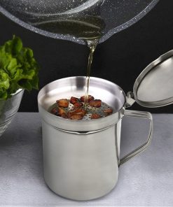 Grasera Acero Inoxidable Para Pescado Aceitera Aceite Usado 1,0 L. Con Colador y Tapa, Recipiente Reciclaje Aceite Usado Pescado
