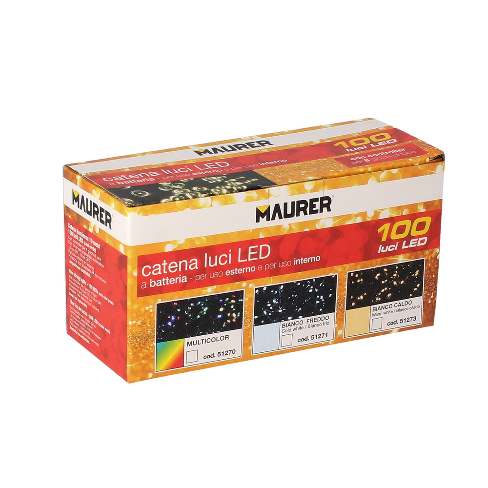 Luces Navidad 100 Leds Color Blanco Calido. IP44. Funcionamiento 3 Baterias AA (No incluidas)