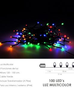 Luces Navidad 100 Leds Color Multicolor IP44. Funcionamiento 3 Baterias AA (No incluidas)