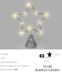 Luces Navidad Estrella Arbol Navidad Luz Blanco Calido 10 Leds. Uso Interno Protección IP20. 2 Baterias AA