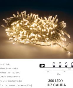 Luces Navidad 300 Leds Color Blanco Calido IP44 Cable Transparente
